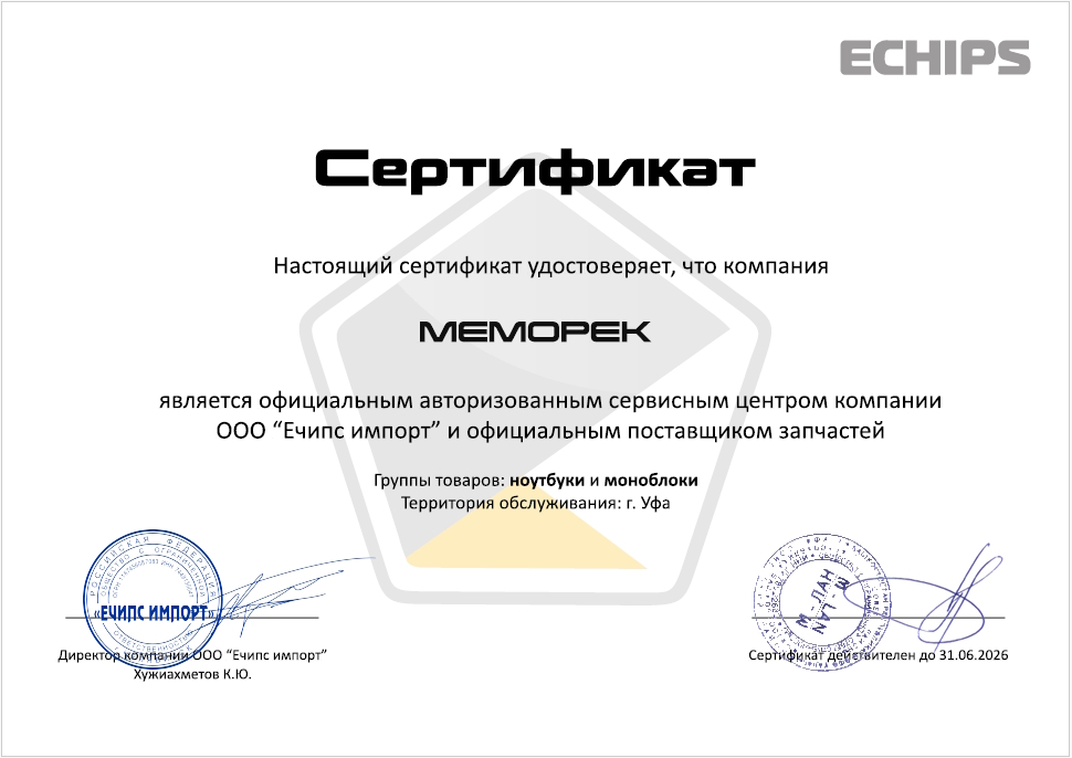 Обладая официальными авторизациями от ведущих производителей компьютерной техники сервисный центр предлагает широкий спектр услуг по гарантийному и послегарантийному сервисному обслуживанию. Уровень квалификации коллектива инженеров Сервис-Центра МЕМОРЕК подтвержден сертификатами производителей.
